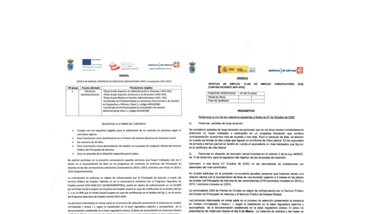 Los anuncios, las bases del proceso y los formularios de solicitud se pueden consultar y descargar en el Tablón de Anuncios de la sede electrónica de la web municipal . En el portal Trabajastur también se publican las ofertas.