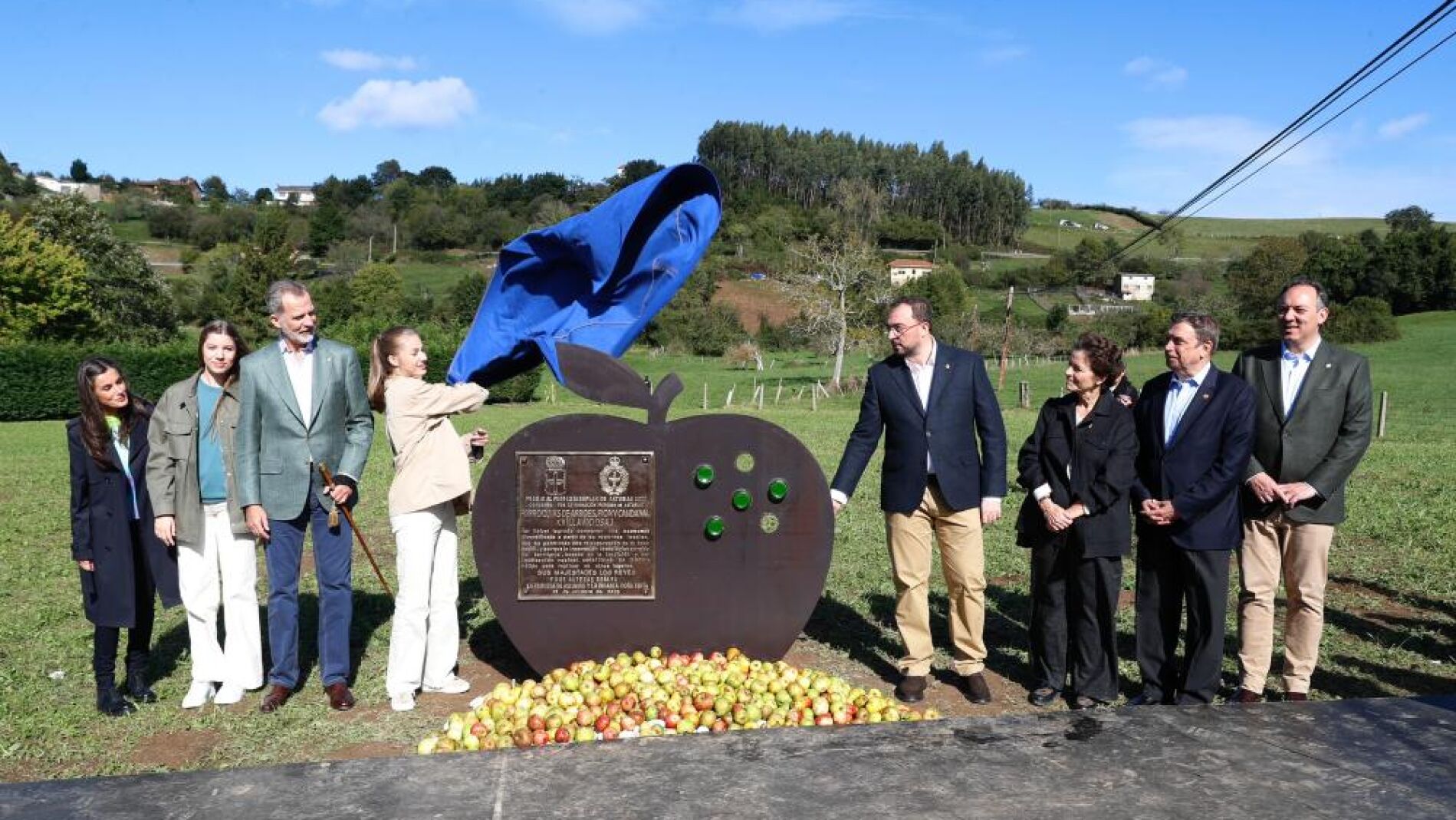 El Pueblo Ejemplar quedará señalizado con una placa conmemorativa en una pieza en metal con silueta de manzana en El Fondoxu, Arroes. Y es que, además las menciones a la relevancia del ganado y la explotación forestal, estuvo muy presente la importancia de les pumaraes y los llagares en Villaviciosa y Asturias y justo en el Día Internacional de la Manzana, el 21 de octubre. En este sentido, la Princesa de Asturias Leonor tuvo un guiño muy claro: "a ver si aprendo yo a escanciar sidra". Su padre el rey tuvo también una referencia a la candidatura de España a patrimonio inmaterial de la Humanidad de la UNESCO para la 'cultura sidrera asturiana': "suerte con esa candidatura", dijo don Felipe.