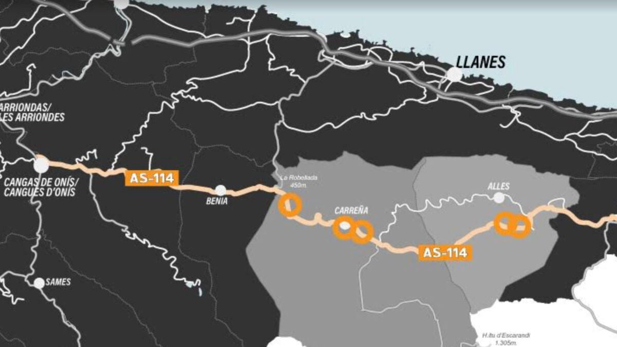 El Gobierno de Asturias acaba de sacar a licitación las obras de mejora de la carretera AS-114 (Cangues d’Onís/Cangas de Onís-Panes) entre los kilómetros 21 y 43. La actuación, que cuenta con un presupuesto base de 201.594 euros y un plazo de ejecución de cuatro meses, permitirá mejorar el firme de esta vía autonómica en cinco tramos, ubicados en los concejos de Cabrales y Peñamellera Alta.