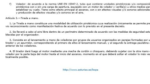 "En el Principado de Asturias, particularmente en algunas localidades, existen unas tradiciones muy arraigadas en las que el uso de la pólvora y la utilización de artificios pirotécnicos es consustancial a las mismas.