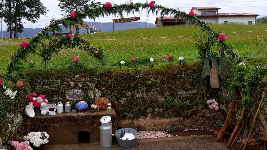 · 3 er PREMIO, dotado con 200 € en materiales, para “Fuente Beronda” (Asociación Ríu Fontoria) por una buena coherencia estética con la tradición del “enramáu de San Xuan”, el empleo de elementos propios de los lavaderos y la utilización de elementos vegetales del entorno para la ornamentación.