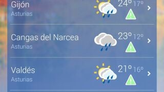 Las máximas perderán entre 2 y 6 grados. El descenso será más acusado en el interior donde se prevén 20 grados en Cangas del Narcea. En Gijón, la máxima prevista se queda en 25. Nuboso o cubierto, disminuyendo al final a intervalos nubosos. Lluvias y chubascos que no se descarta que puedan ser localmente fuertes y persistentes e ir acompañados de tormenta, sobre todo en el tercio occidental. Temperaturas en descenso. Viento flojo con predominio de la componente sur, con intervalos más intensos en la Cordillera, donde se esperan rachas muy fuertes en cotas altas.