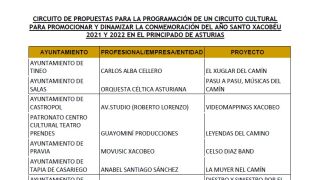 En total, se han seleccionado 14 propuestas de doce artistas, profesionales y empresas asturianas que se mostrarán en 18 concejos hasta diciembre, informa la Consejería de Cutura. Música, artes escénicas y videomapping conforman las actividades de esta iniciativa, que se enmarca en el programa de circuitos culturales Asturies, Cultura en Rede, y al que la Consejería destinará este año 55.676 euros.