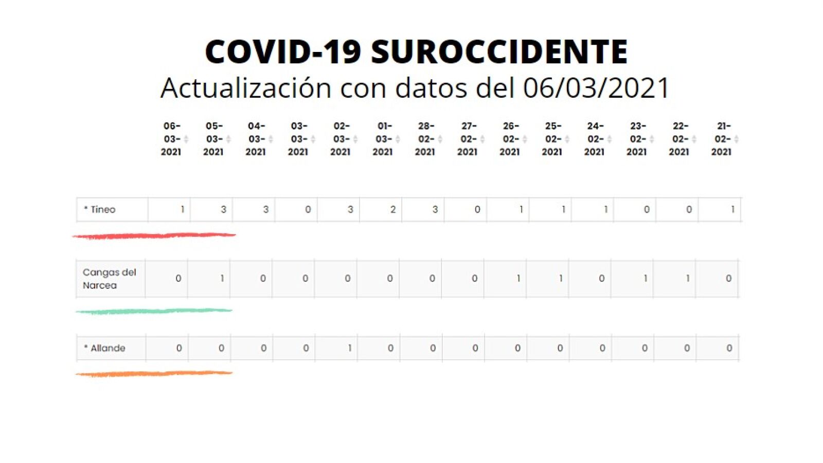 - Y en `Riesgo Medio´ = Nivel de Alerta 2, está Allande y sólo por haber sumado 1 caso en 14 días, es lo que tienen las estadísticas en municipios poco poblados.