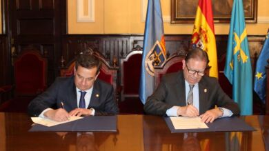 El alcalde de Oviedo, Alfredo Canteli, y el presidente del Colegio Oficial de Médicos de Asturias, Luis Antuña, firmaron la renovación del convenio de colaboración entre ambas instituciones, que tendrá una vigencia de cuatro años.