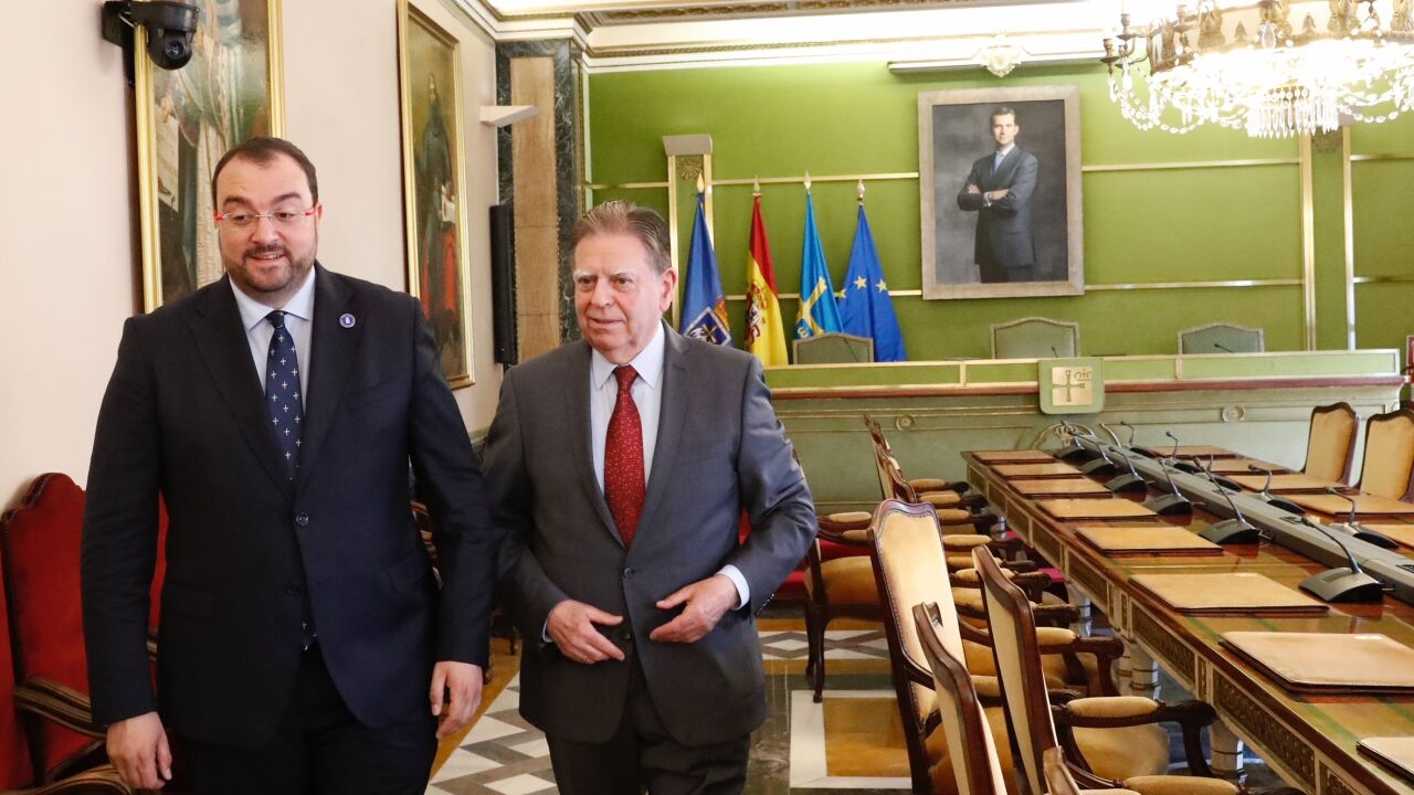 Barbón y Canteli se han dado cita en el Consistorio ovetense, en la que ha sido la primera visita institucional del presidente a la casa consistorial de la capital asturiana. Allí han abordado asuntos que llevan sobre la mesa varios años, como el futuro de la fábrica de armas de La Vega o de los terrenos del antiguo Hospital Universitario Central de Asturias (HUCA), pero también nuevos proyectos como el museo de los Premios.