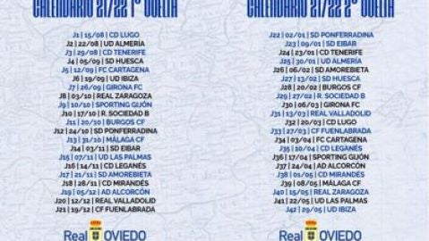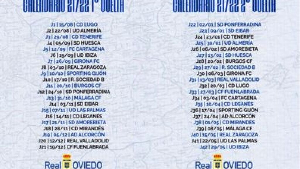 El Real Oviedo abrirá la Liga jugando como local. Los azules recibirán al Lugo en el fin de semana del 15 de agosto y cerrarán el campeonato también jugando en su estadio frente al recién ascendido Ibiza.