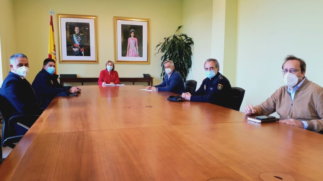 La delegada del Gobierno en Asturias, Delia Losa, presidió la habitual reunión de seguridad previa al derbi que disputarán el Real Sporting y el Real Oviedo el sábado a las 18.15 horas en El Molinón. En la cita han estado presentes el director del Área de la Alta Inspección de Educación de la Delegación, José Emiliano Sarralde, el inspector coordinador de seguridad para el Real Sporting de Gijón, Luis Claudio Alperi, el inspector coordinador de seguridad para el Real Oviedo, Pedro Aguado, el director del Área Deportiva y de Seguridad del Real Sporting de Gijón, Carlos Barcia, y el director de Seguridad del Real Oviedo, Jesús Manuel Álvarez.