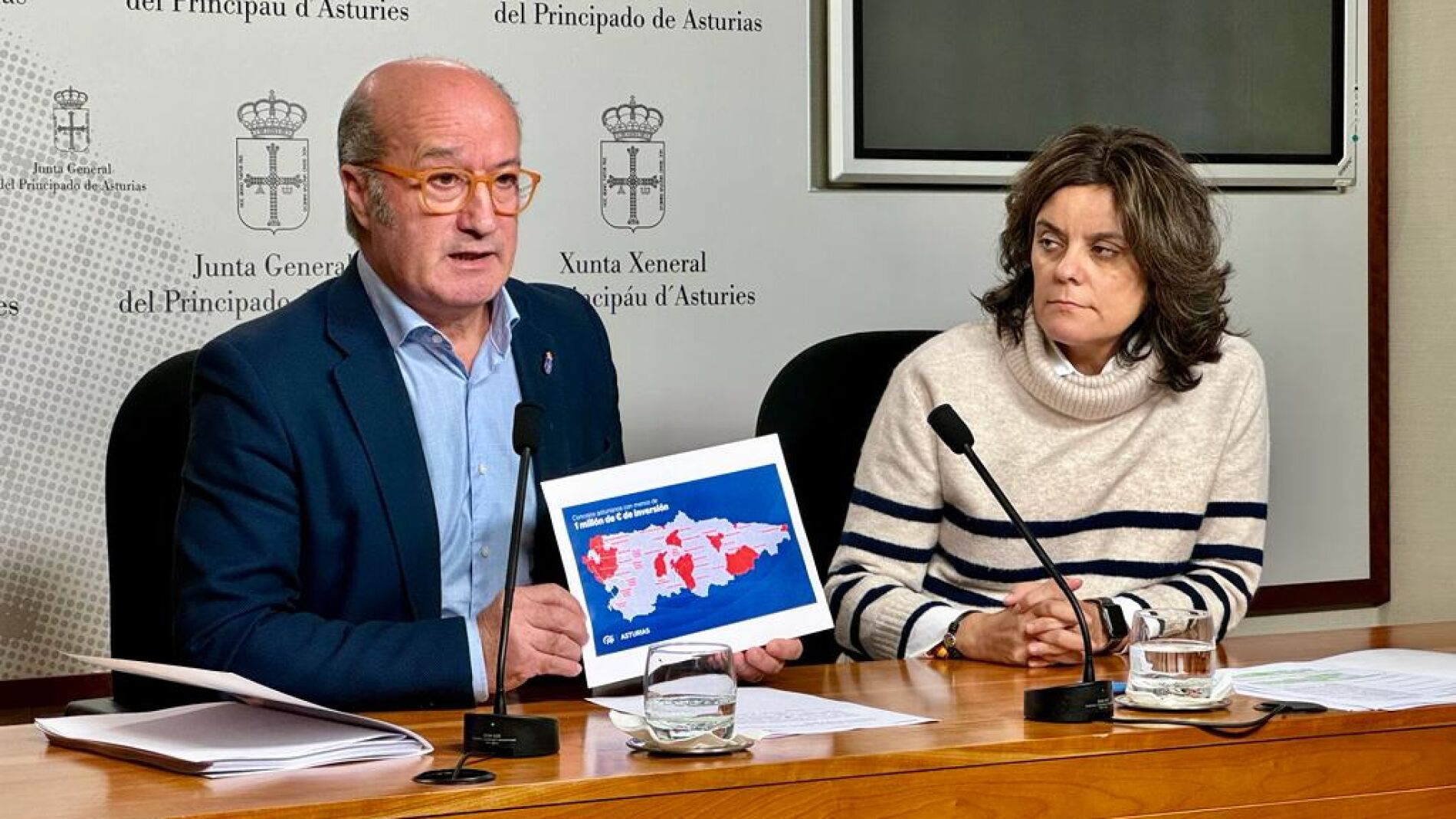 Los portavoces adjuntos del PP en la Junta General, Luis Venta y Beatriz Polledo, han anunciado este miércoles la presentación de 168 enmiendas parciales al proyecto de Presupuestos Generales del Principado para 2024, por un montante global de 55.597.505 euros, con el objetivo de "mejorar" las cuentas autonómicas frente al "muro" del presidente asturiano, el socialista Adrián Barbón.