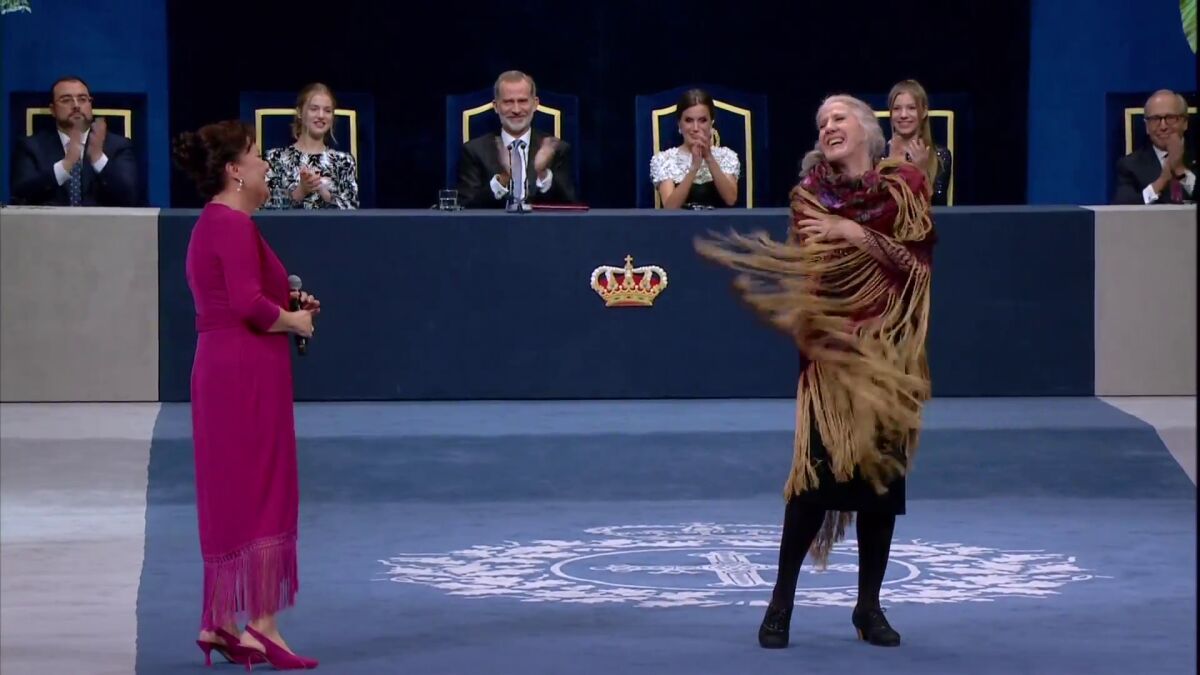 No hablaron. No les hizo falta. Las premios de las Artes, la bailaora María Pagés y la cantaora Carmen Linares, mostraron su arte y amistad regalando al público una breve actuación en la que Linares interpretó un poema de Juan Ramón Jiménez acompañada por el vertiginoso movimiento de un mantón de Manila de Pagés.