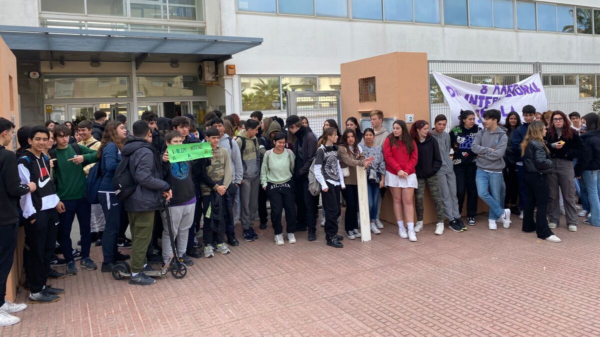 La puerta del IES Xarc de Santa Eulària ha acogido esta mañana la concentración que han convocado los estudiantes junto a profesores y comunidad educativa para pedir mejoras urgentes en el centro.