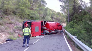 Según ha informado este lunes el Consell de Ibiza en su cuenta de Twitter, el vehículo está obstaculizando la vía.