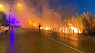 Al incendio acudieron cinco unidades con diez agentes de Policía Local de Ibiza, siendo su tarea principal auxiliar a los bomberos para facilitarles el acceso y cortar el tráfico en la avenida de Santa Eulària.