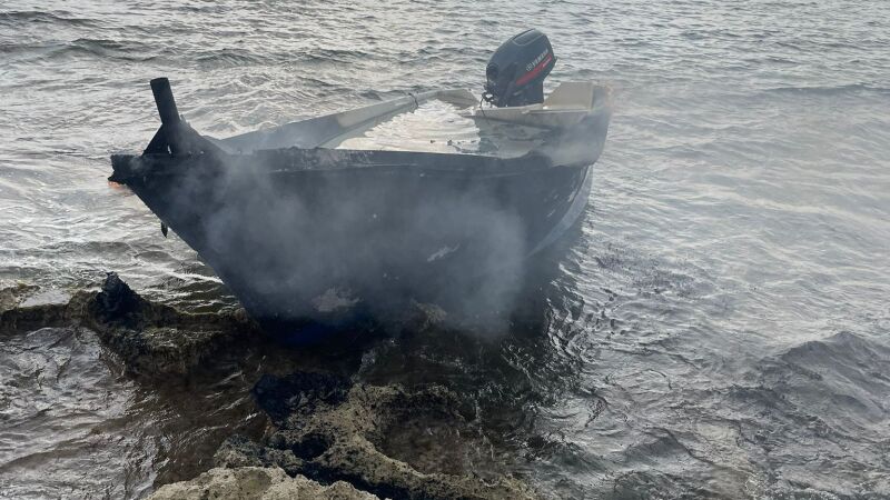 Además, los bomberos de Formentera han tenido que emplearse a fondo para apagar el incendio en una patera que había tocado tierra en la Punta de ses Pesqueretes, en la zona de s’Estufador, sobre las 08:40 horas. En los trabajos de extinción han actuado un cabo y dos bomberos en un vehículo ligero de primera intervención y una autobomba rural ligera viéndose obligados los agentes a tender siete mangueras de 20 metros cada una para poder llegar hasta la patera y apagar las llamas, ya que se encontraba en una zona de difícil acceso.