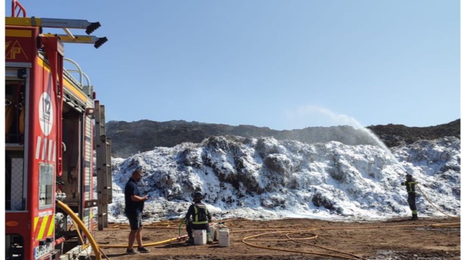 Tanto que ha habido una reunión de coordinación entre el Conseller en funciones Salvador Losa, el responsable de Emergencias en Eivissa, Pablo Garriz, el jefe del Servicio de Bomberos del Consell de Eivissa, Miguel Sevilla, el técnico insular Jaume Estarelles, el representante de Protección Civil de Sant Antoni Eladio Merino y representantes de la propiedad de la planta de compostaje afectada.