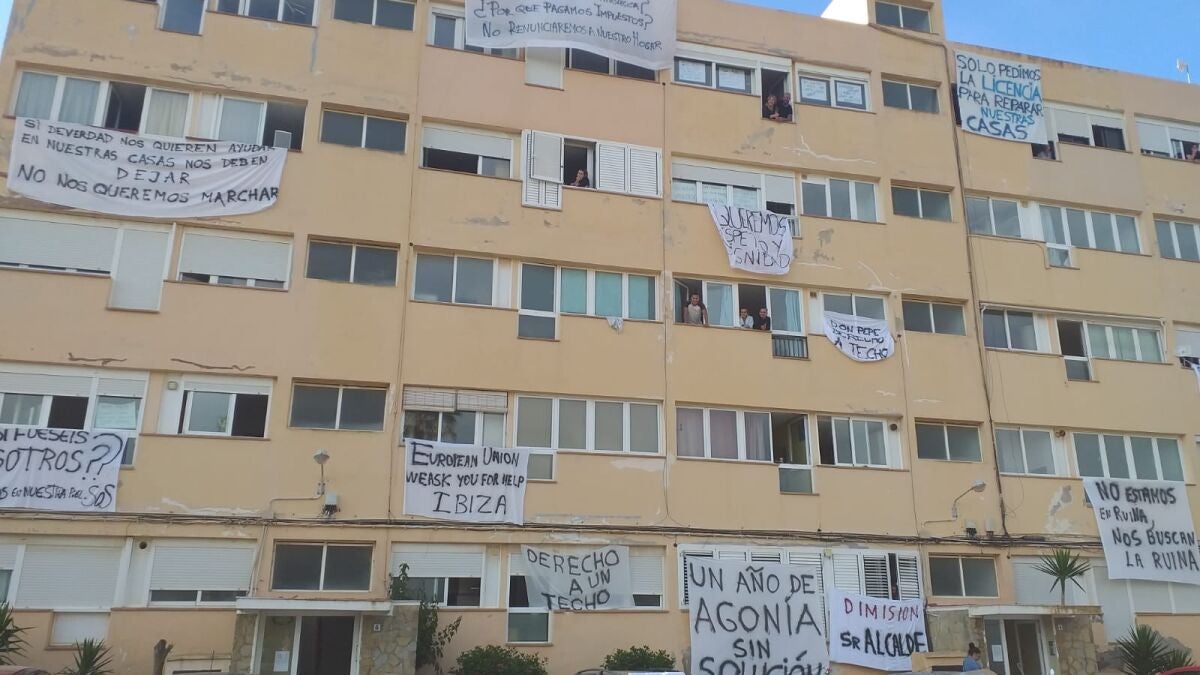 Asimismo, los vecinos han recordado que este lunes está previsto el desalojo "por las buenas o por las malas" de los vecinos de tres escaleras de uno de los edificios, 72 adultos y varios niños y mascotas. Según han explicado también, el Ayuntamiento de Sant Josep les ha ofrecido 1.976.000 euros para adquirir el inmueble y derribar posteriormente el edificio debido a sus problemas estructurales.
