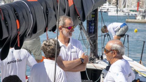 El 'Aifos' de la Armada Española, con el Rey Felipe VI a la caña, se ha impuesto en la regata costera de la clase Majorica ORC1 en la tercera jornada de la Copa del Rey MAPFRE de vela, un resultado que le garantiza avanzar como tercer clasificado de Majorica ORC1 a la serie final, que comienza este jueves en la bahía de Palma, mientras que el 'Teatro Soho CaixaBank' mantiene el pleno en Majorica ORC2.