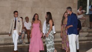 La Familia Real ha llegado sobre las 20.30 horas a la Llotja para comenzar una visita privada y contemplar las esculturas de Miró, acompañados por el nieto del artista Joan Punyet que les ha presentado las obras.