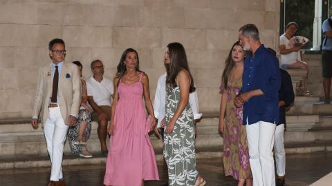 Los Reyes Felipe VI y Letizia junto con la princesa Leonor y la infanta Sofía han visitado este martes la exposición 'Paysage Miró. La fuerza inicial' en la Llotja de Palma.
