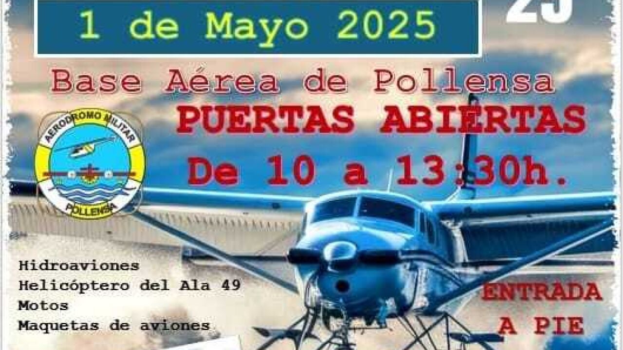 La jornada de puertas abiertas en la base aérea de Pollença se celebrará de 10 horas a 13.30 horas este jueves, previa presentación del DNI, con actividades para toda la familia, según el coronel de la base, Alberto Sevilla, quien recomienda venir con tiempo para disfrutar de este día festivo también dedicado a la aviación.