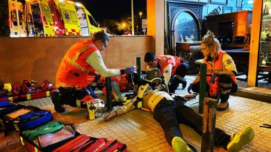 El SAMU 061 ha explicado que un taxista dio la voz de alarma sobre las 01.50 horas tras hallar a una persona inconsciente, tirada en el suelo, con numerosas heridas y rodeada de sangre.