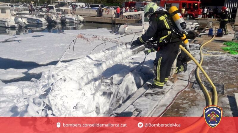 Hasta el lugar de los hechos se han desplazado, además de agentes de la Guardia Civil y ambulancias, 12 bomberos y cuatro vehículos contraincendios de los Bomberos de Mallorca, que se han encargado de establecer barreras de contención para evitar la contaminación.