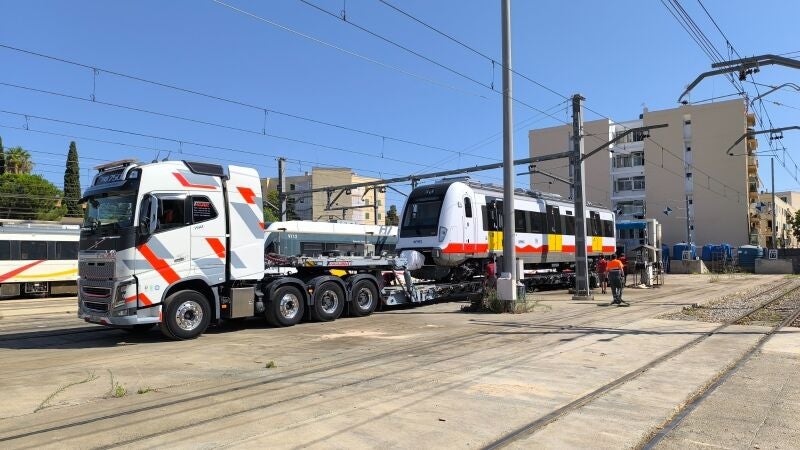 El tercero de los cinco nuevos trenes adquiridos por el Govern para reforzar la flota de Serveis Ferroviaris de Mallorca (SFM) ha llegado a Mallorca este miércoles.