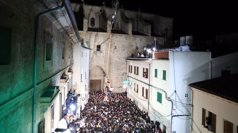 Pau Cifre, de 16 años, ha logrado ser el primero en trepar el 'Pi de Sant Antoni' de Pollença este 2024, a pesar de las recomendaciones del Ayuntamiento de la localidad de que los menores no trataran de coronar la copa del pino de 20 metros de altura.