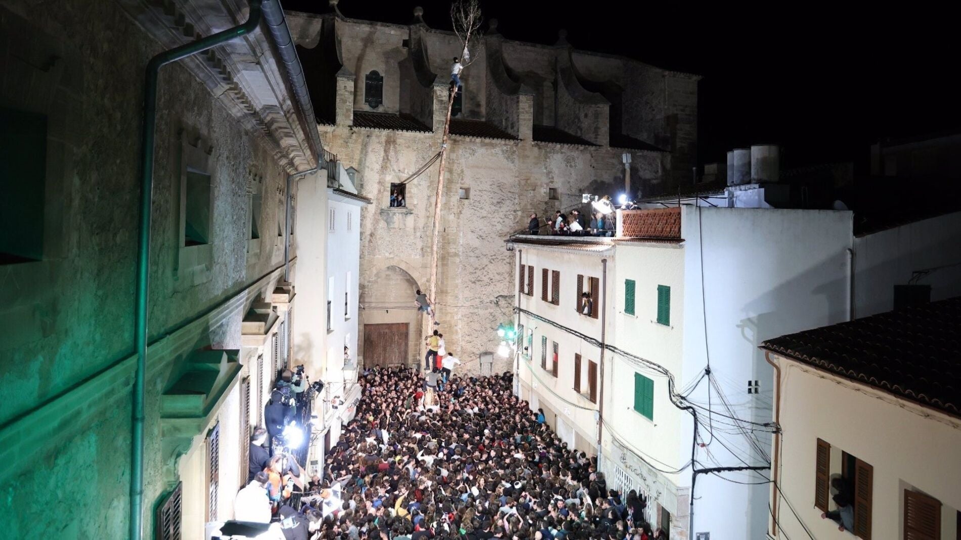 El primero de los jóvenes en intentarlo ha sido Tomeu de Ca'n Moixet pero se ha quedado en la primera de las cuerdas que lo anclaban. Cifre ha sido el siguiente y a las 20.20 horas ya estaba en el trispasto, que era el punto previo a alcanzar la bolsa de confeti que finalmente ha roto a las 20.30 horas.