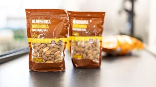Almendras tostadas con sal en el lineal de supermercado Mercadona