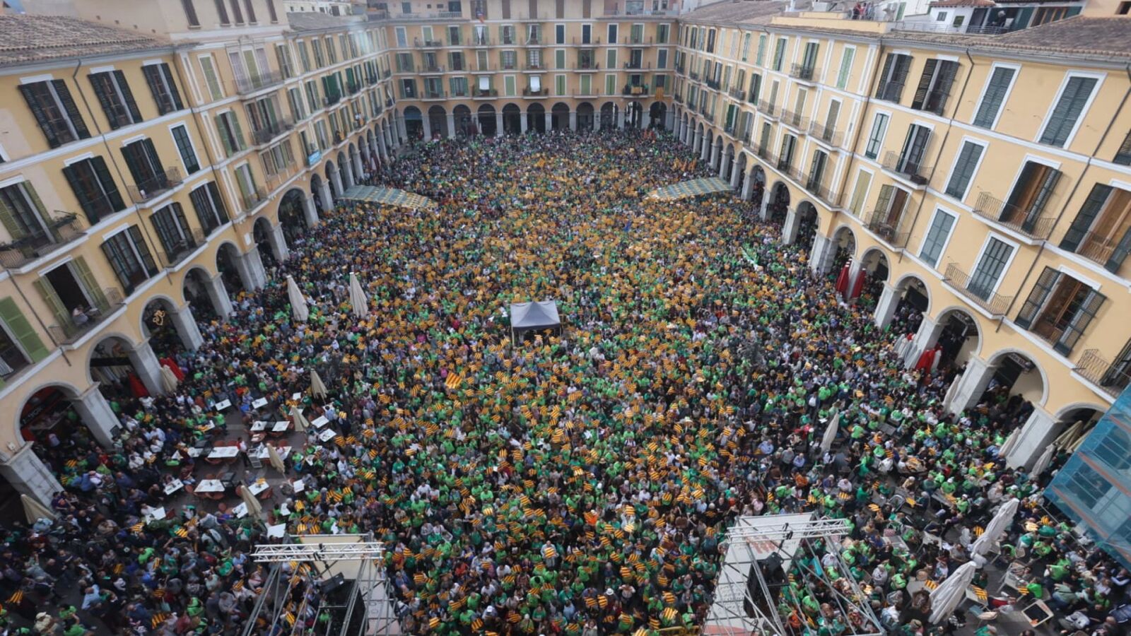Miles de personas --la Obra Cultural Balear ha cifrado el número de asistentes en unos 40.000, número que la Policía Local ha rebajado hasta los 5.000--, se han dado cita este domingo en la plaza Major de Palma para exigir a la administración que defienda el catalán frente a las "políticas involutivas" de "una minoría fanática" que, en su opinión, han marcado los primeros meses de esta legislatura.