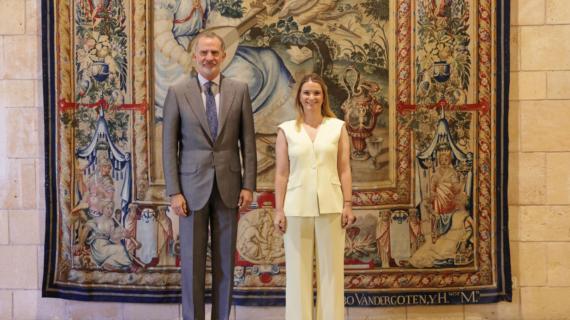 La presidenta del Govern, Marga Prohens, ha explicado este miércoles al Rey Felipe VI el proceso de transformación del modelo económico que ha iniciado el Govern, con el pacto social y político por la sostenibilidad, en una audiencia en la que han hablado de "todos los temas del panorama actual". Así se ha expresado la líder del Ejecutivo balear en declaraciones a los medios tras el encuentro con Felipe VI en el Palacio de la Almudaina, donde también ha agradecido al Rey su presencia a Mallorca "un año más".