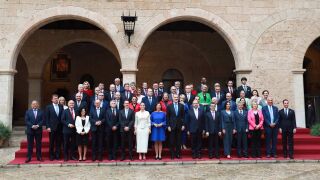 A continuación, el Rey Felipe, las autoridades y las delegaciones parlamentarias participantes, unas 40 aproximadamente, en la cita han posado para una foto de familia.