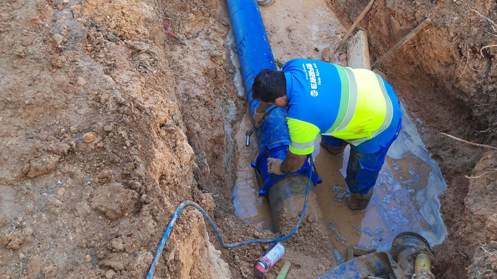 Las viviendas afectadas por la avería en una conducción de agua potable de 25 centímetros en la plaza de Sa Feixina, en Palma, ya han recuperado el suministro, que se vio interrumpido el domingo por una avería en una cañería.