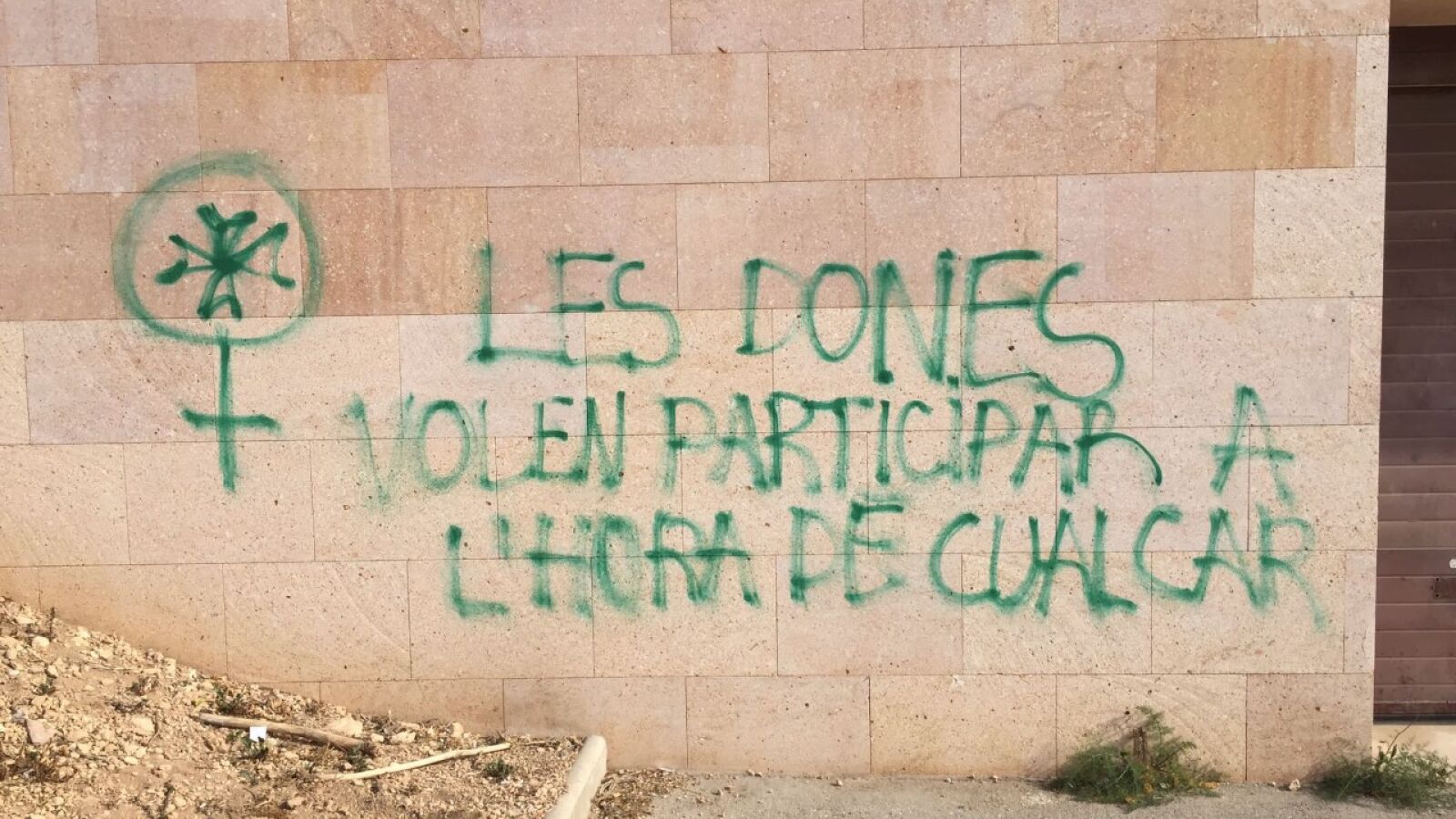 Entre los lemas que recogen las pintadas destaca "las mujeres quieren participar en la colcada", "el miedo del patriarcado no las deja participar" o "exigimos igualdad todo el año, también en los días de Sant Joan". Las pintadas se acompañan de un símbolo feminista y la cruz de Sant Joan en su interior.