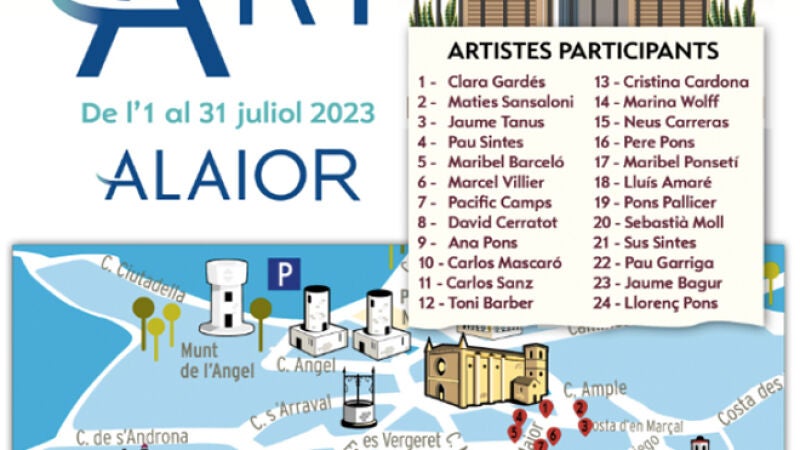 Un total de 24 artistas menorquines exponen sus obras en balcones de edificios del casco antiguo de Alaior en una iniciativa cultural organizada por el ayuntamiento y la galería "Pinzellades d'Art". La muestra, inaugurada el pasado sábado, incluye obras pictóricas de distintos estilos, que se exhiben en lonas de gran tamaño y permiten disfrutar de una combinación inédita entre arte y arquitectura.