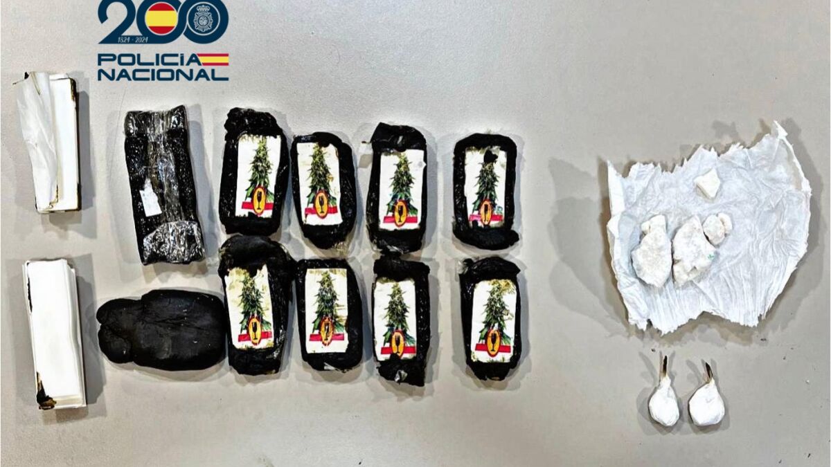Han sido intervenidos 16.7 gramos de cocaína base (374 monodosis), 2 gramos de cocaína y 281 gramos de hachís