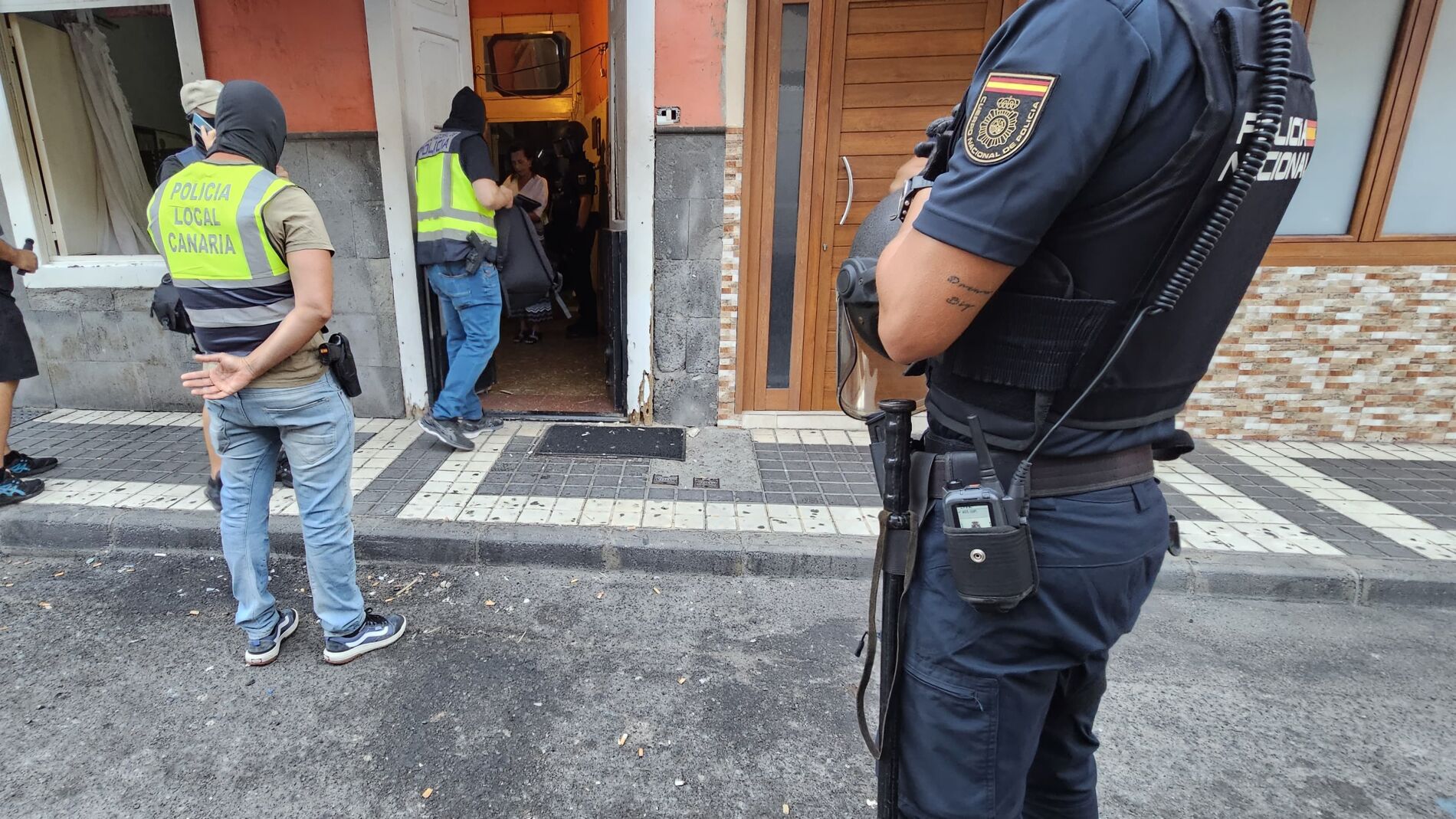 Agentes de la Policía Nacional y la Local, más de 60, se han desplegado a primera hora de la mañana en varios puntos de la zona de Molino de Viento en Las Palmas de Gran Canaria, en el barrio de Arenales. Hay de momento cuatro detenidos y un quinto que ya está en prisión.