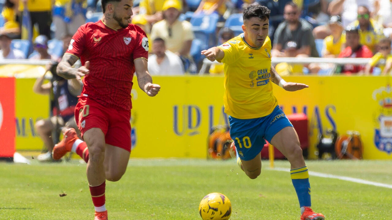Una patada, un tropezón de Gudelj con Coco no puede ser roja porque no es, casi, ni falta. El resto del partido fue un quiero y no puedo. La UD tuvo el balón y el Sevilla el peligro. Un gran cabezazo de En Nesyri fue el 0–1 al descanso y todo lo que se remó acabó en la orilla con el remate a puerta vacía de Lukebakio tras fallo del debutante en casa Aarón Escandell.