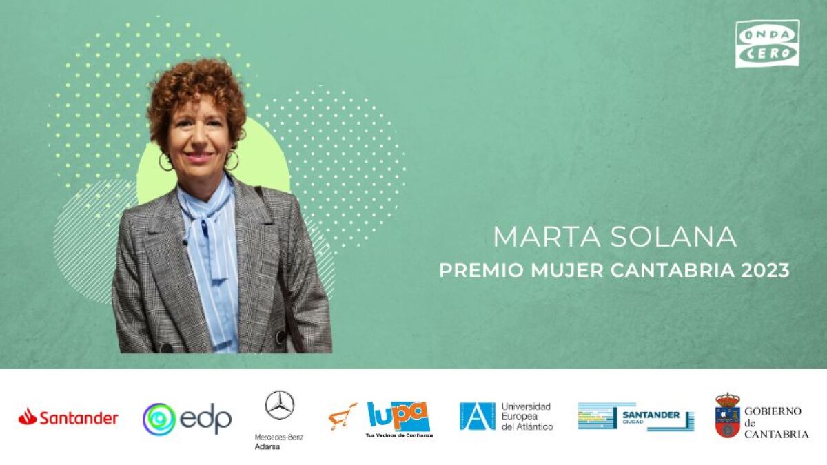 La entrega del V Premio Mujer Cantabria tendrá lugar el jueves, 23 de noviembre, en el Palacio de la Magdalena. Marta Solana tomará así el relevo de Paula Sumillera (Premio Mujer Cantabria 2022), Eloísa Canga (Premio Mujer Cantabria 2021), María Victoria Troncoso (Premio Mujer Cantabria 2020) y de Pepa Pérez Vega (Premio Mujer Cantabria 2019).
