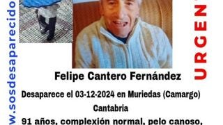 Efectivos de emergencias están buscando por aire y tierra a un vecino de Muriedas (Camargo) de 91 años desparecido ayer por la tarde.