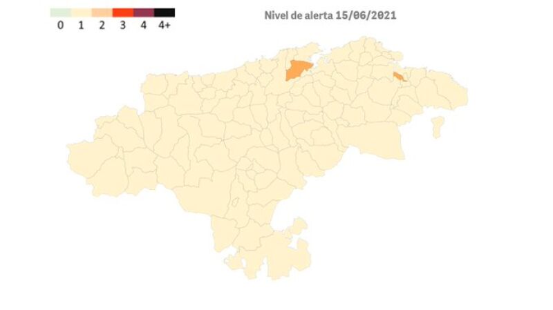 El ‘Semáforo Covid’ sitúa a partir del 17 de junio a dos municipios de Cantabria en riesgo medio (nivel 2 de alerta) frente al coronavirus. Se trata de Camargo y Colindres como anunciaba en la red social Twitter la consejería de Sanidad. El resto de municipios de Cantabria entrarán este jueves 10 de junio en nivel 1 de alerta sanitaria.