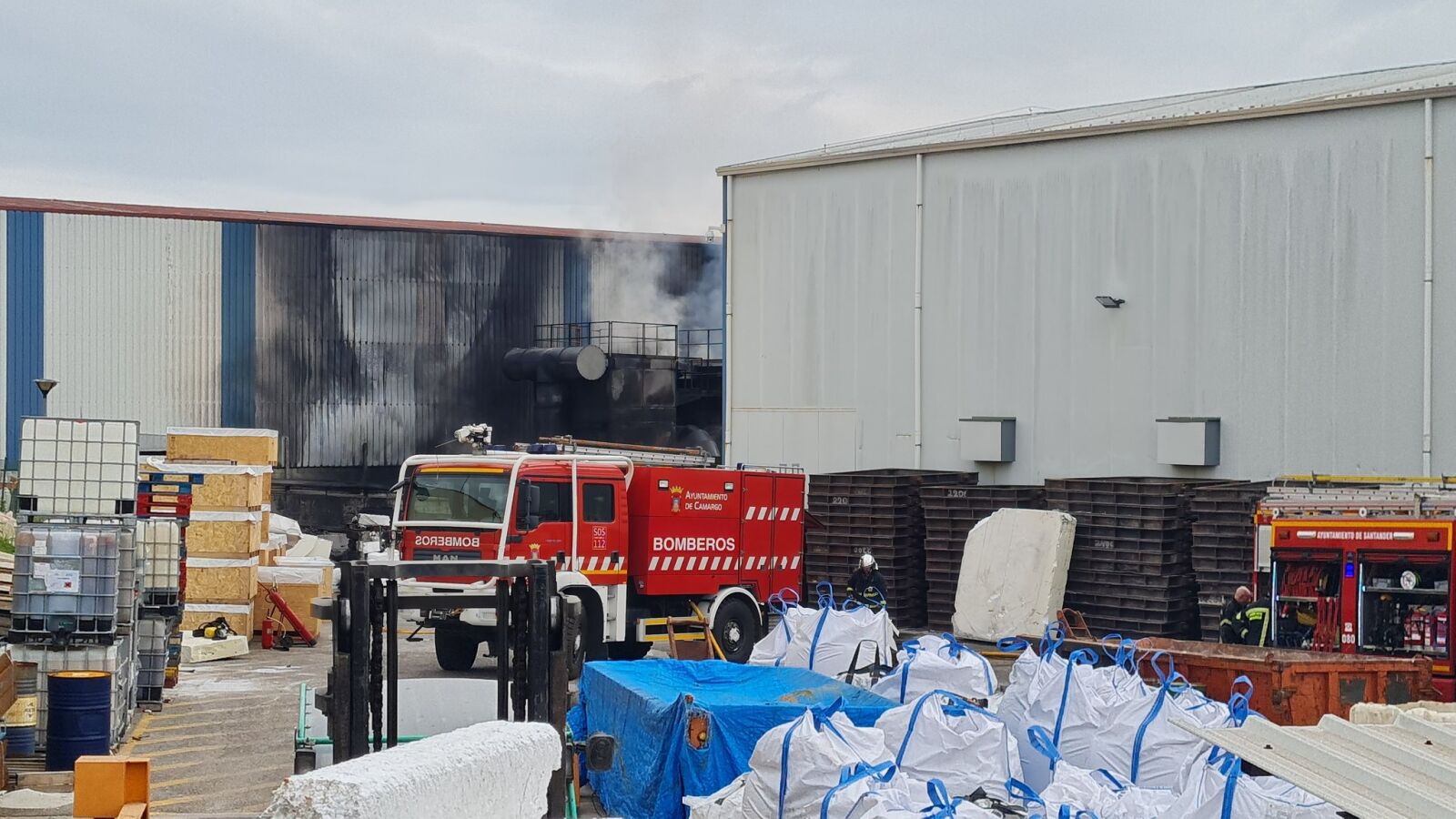 El incendio se ha desatado en la fábrica JC Navalips, una empresa de piezas de fundición de bronce, en la parte exterior aunque luego se ha extendido al interior de la nave.