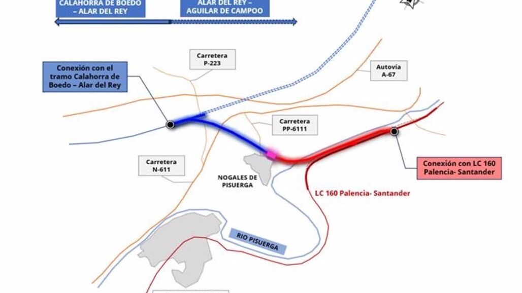 El enlace, a ejecutar a través de Adif AV, conectará, a la altura de la localidad palentina de Nogales de Pisuerga, el trazado de la línea de alta velocidad (LAV) en construcción entre Palencia y Alar del Rey, de 78,4 kilómetros, con la actual línea de ferrocarril convencional Palencia-Santander.