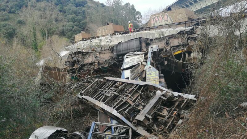 Además, los bomberos del Gobierno han cubierto con espuma una zona humeante de uno de los cuerpos del tren que han descarrilado, el depósito de la máquina y un derrame de combustible para evitar posibles incendios.
