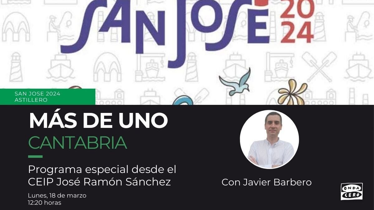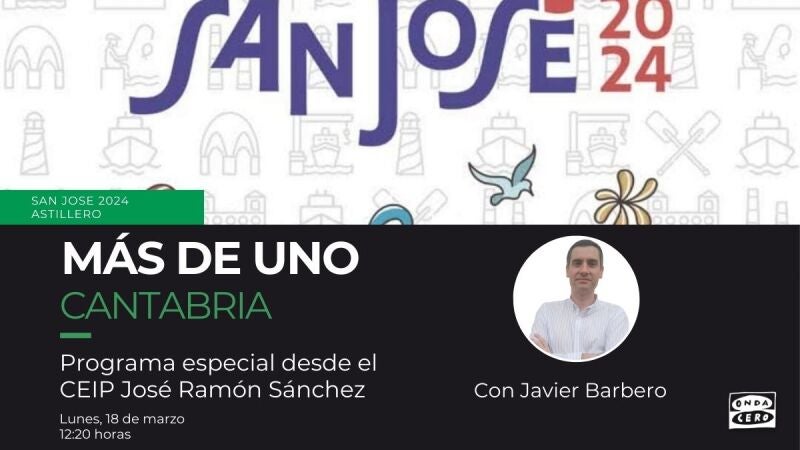Onda Cero Cantabria celebra San José 2024 con un programa especial desde Astillero. Y es que el CEIP José Ramón Sánchez será el estudio desde el que realizaremos el programa 'Más de Uno Cantabria' el próximo lunes, 18 de marzo.