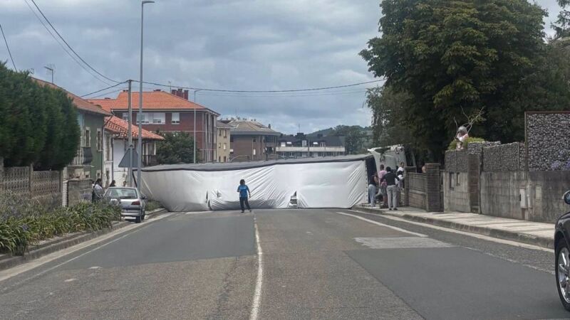 La carretera nacional N-611 ha estado cortada durante 7 horas a la altura de Requejada (Polanco), después de que volcara un camión que transportaba vigas de cemento y que quedó atravesado sobre los dos carriles. El conductor se encontraba en buen estado.