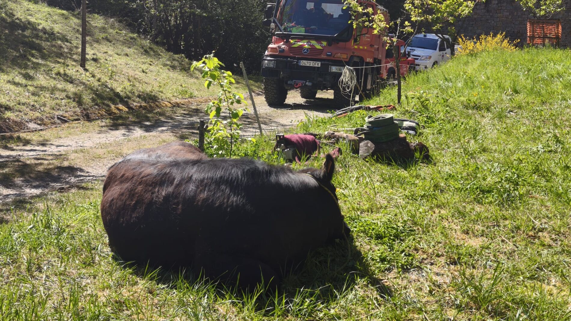 Se le dejó agua y comida para pasar la noche y todo planificado para el día siguiente, miércoles, que fue cuando finalmente se consiguió sacarlo de la zona donde había caído y ponerlo a salvo.