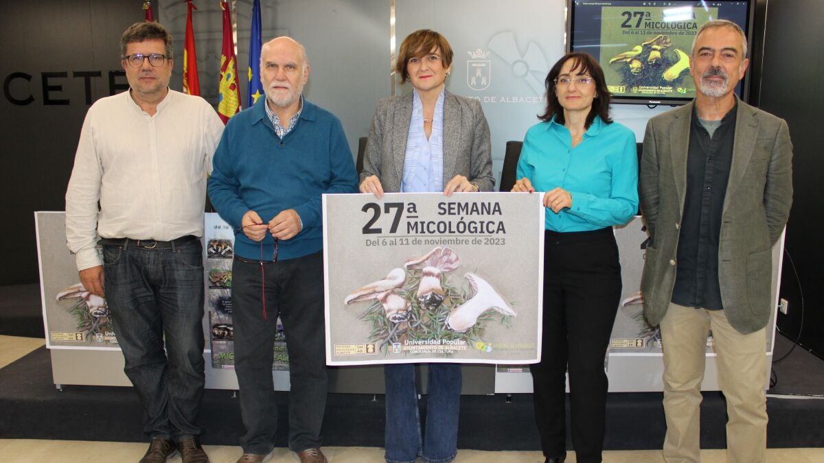 La concejala de Cultura, Elena Serrallé, ha participado en la presentación de las actividades que tendrán lugar del 6 al 11 de noviembre en Albacete con motivo de la 27º Semana Micológica, acompañada por la directora de la Universidad Popular, Mª José Jiménez, el profesor del Aula de la Naturaleza, José Fajardo, el director del Jardín Botánico de Castilla-La Mancha, Pablo Ferrandis, y Domingo Blanco, en representación de la Sociedad Micológica de Albacete.