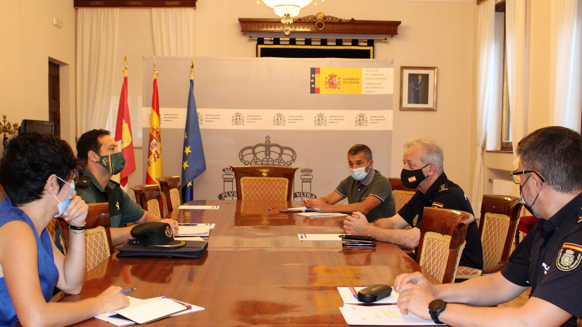 El subdelegado del Gobierno, Miguel Juan Espinosa, ha subrayado en la reunión, con la asistencia de Inspección de Trabajo, Policía Nacional y Guardia Civil, la importancia de seguir manteniendo la vigilancia sobre el cumplimiento de las medidas preventivas frente al Covid-19 y evitar la figura del intermediario para la contratación de mano de obra de cara a la inmediata campaña de la vendimia, al ser una figura prohibida por la legislación vigente.